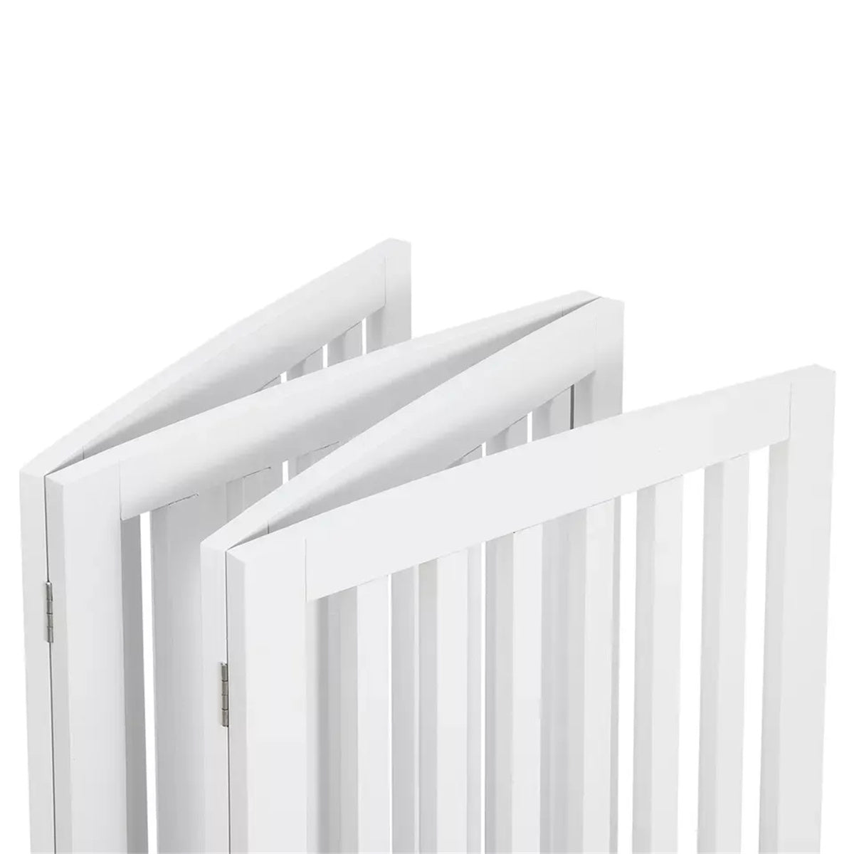 ● Flexible & Sturdy: This pet gate is a 24" wooden pet fence and room divider. Designed with elegant and tough wood and a spray paint finish, it also has durable 360°metal hinges and non-slip rubber pads.