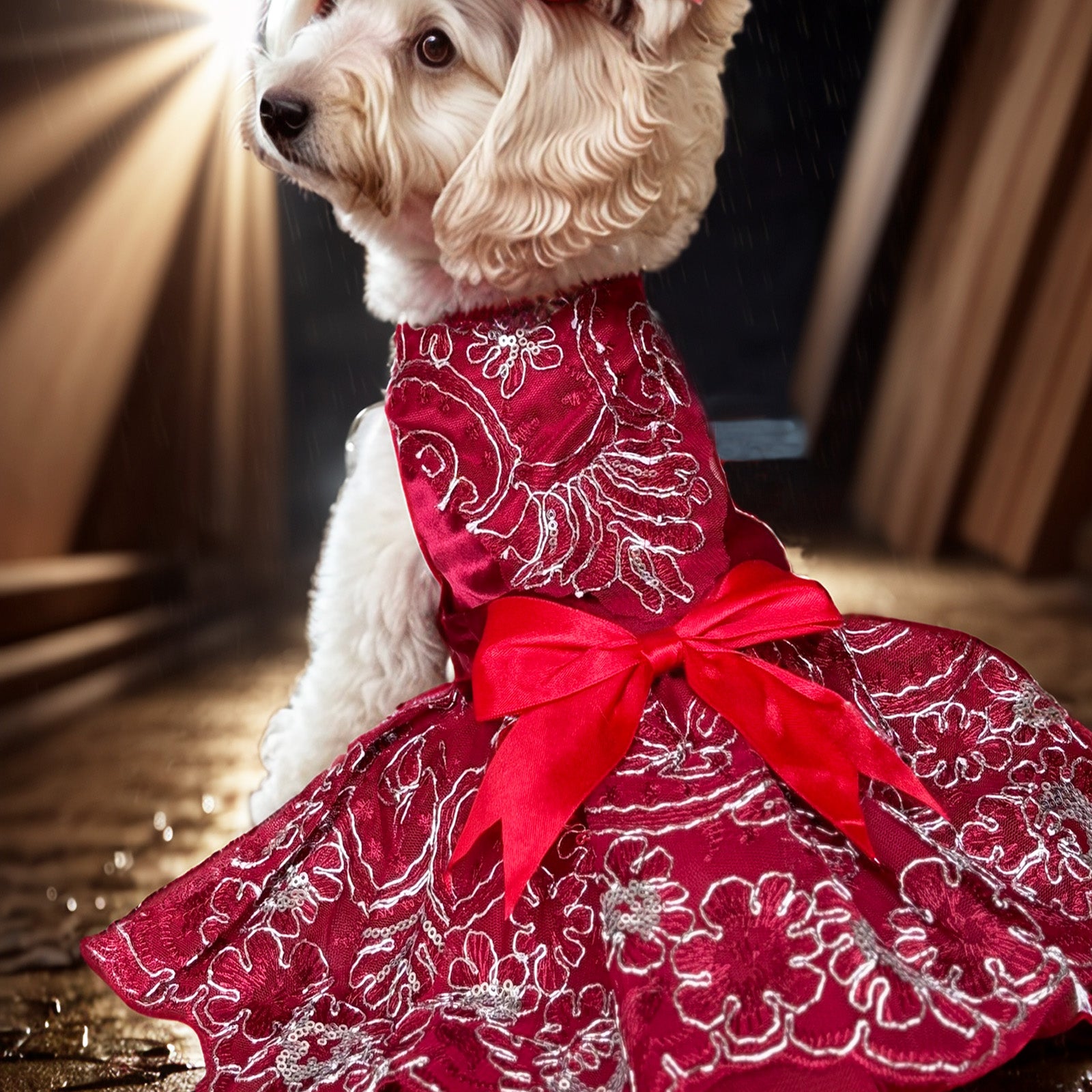 - Specially ornate embroidery design.exuding a Luxury and Magnificent style, complemented by a charming multi-layer mesh tulle and bow that adds a touch of beauty and elegance to your pet's dress Up.